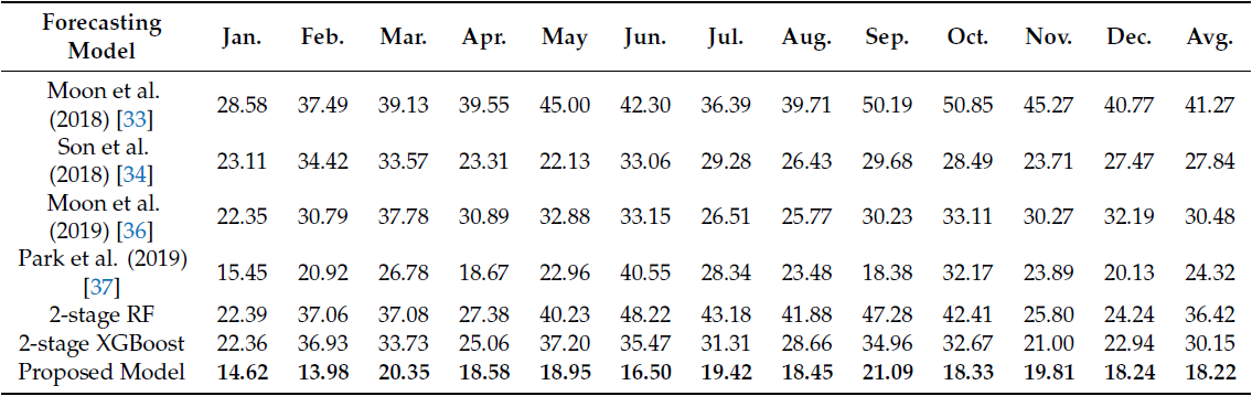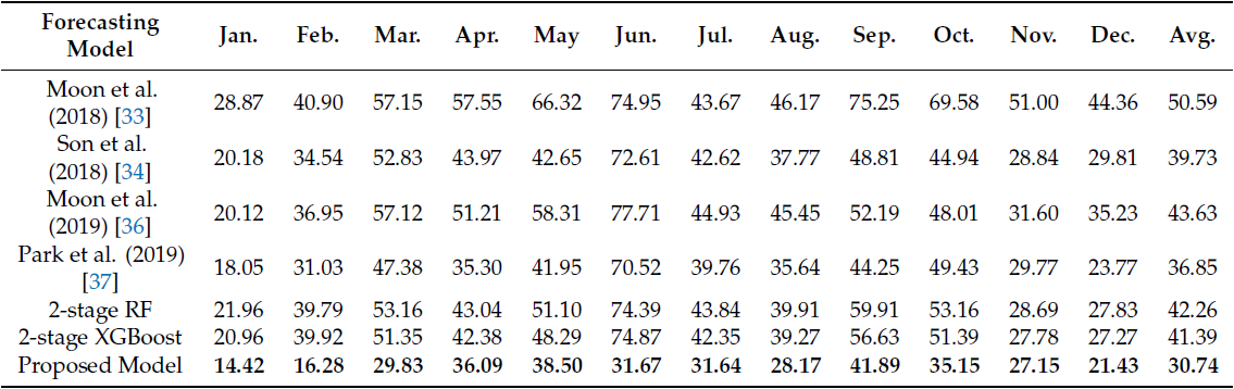 CVRMSE comparison for each monthMAPE comparison for each monthResults of Wilcoxon test and Friedman test